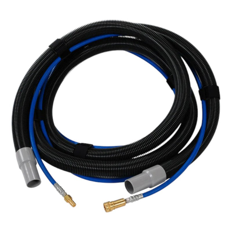 Includes a 1.5" crush-proof vacuum hose and high-pressure solution line with brass quick connects.