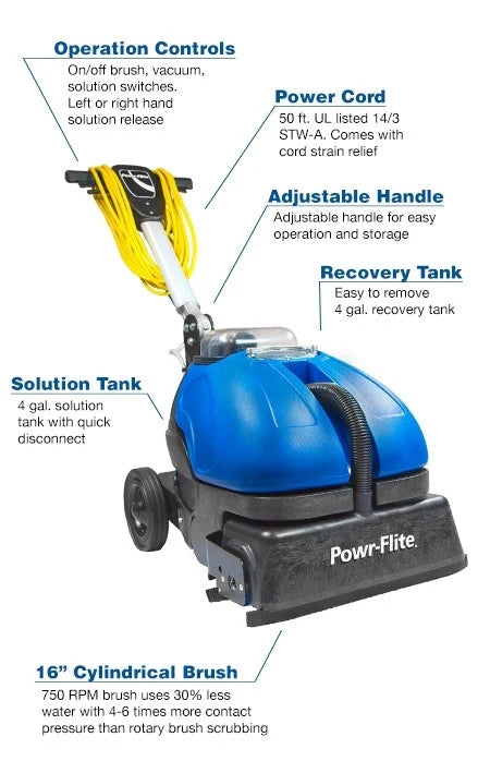 Powr-Flite CAS16 Powr-Scrub 16" Automatic Scrubber - Cylindrical - CAS16
