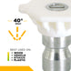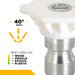 40° (White): Gentle rinse for vehicles, siding, windows, decks, and delicate surfaces