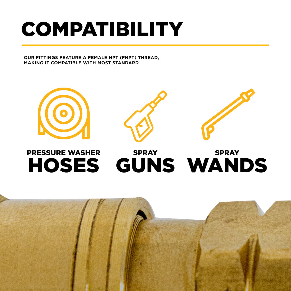 Compatible with most pressure washer hoses, spray guns, and wands