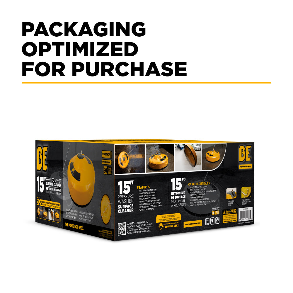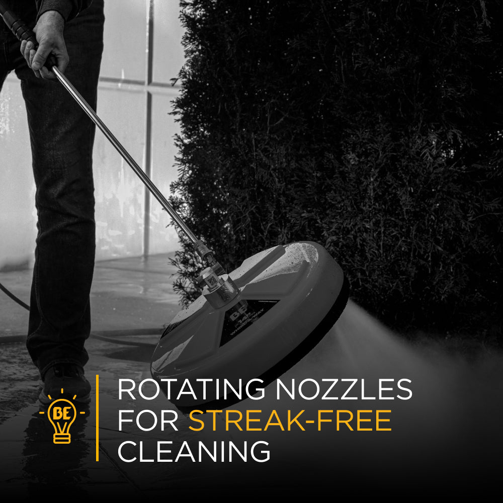 The 15โ Whirl-A-Way Pressure Washer Surface Cleaner delivers fast, streak-free cleaning across large flat surfaces. Using dual high-speed rotating spray jets, it creates a wide and consistent cleaning path that removes dirt, grime, and stains from concrete, asphalt, stone, patios, driveways, sidewalks, and more. Lightweight construction, a hovering design, and universal quick-connect compatibility make this surface cleaner an essential upgrade for both residential and commercial pressure washing.