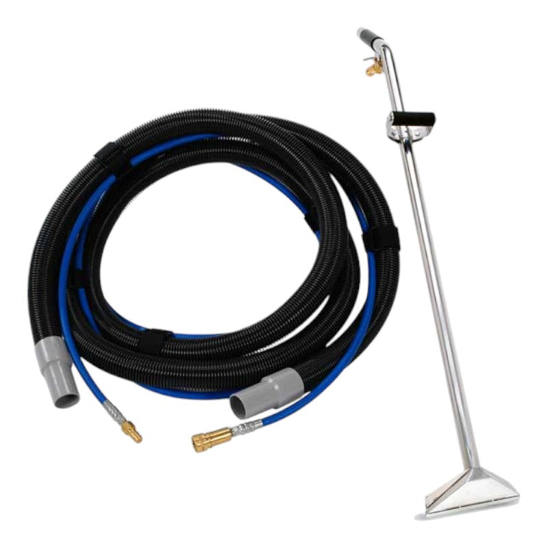 The EDIC 1530ACK Hose Assembly and Carpet Wand Kit is the perfect upgrade for Galaxy extractors, giving you everything you need for efficient, high-performance carpet cleaning. This kit combines a 10" stainless steel GlideMaster single-jet wand with a 15' high-pressure vacuum/solution hose assembly, providing excellent reach, control, and precision for both commercial and residential cleaning.