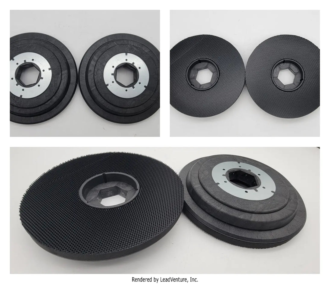 This Pad Driver Set is designed exclusively for the Tornado® Microburst Ultra-Compact Floor Scrubber, expanding its cleaning versatility. Each driver features a Velcro-style hook surface that securely holds a variety of pads—including microfiber mop pads, red/green/white scrubbing pads, and other compatible options—making it ideal for light cleaning, polishing, or deeper scrubbing tasks.