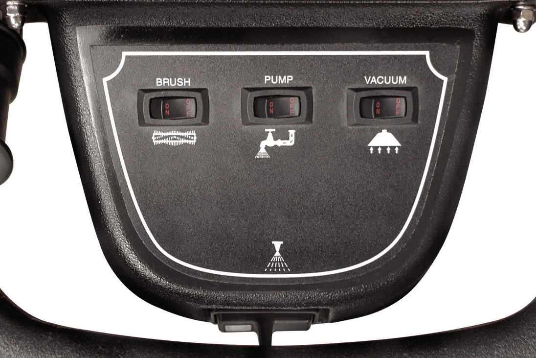 Independent switches for vacuum, pump, and brush simplify operation and allow control based on cleaning needs.