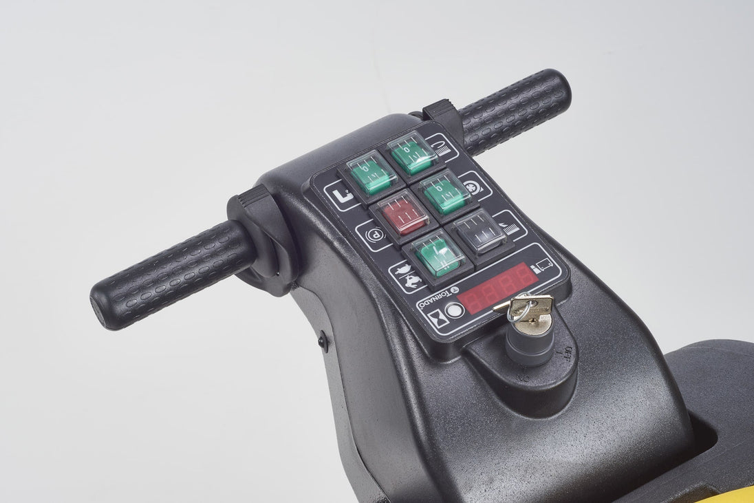 The Tornado® OB 20/14 Walk-Behind Orbital Scrubber is designed for high-efficiency hard floor cleaning in commercial environments where faster results, reduced chemical usage, and low operator fatigue are top priorities. Its 20" × 14" rectangular orbital scrub head delivers up to 110 lbs of down pressure, allowing effective cleaning along edges, into corners, and across textured surfaces.